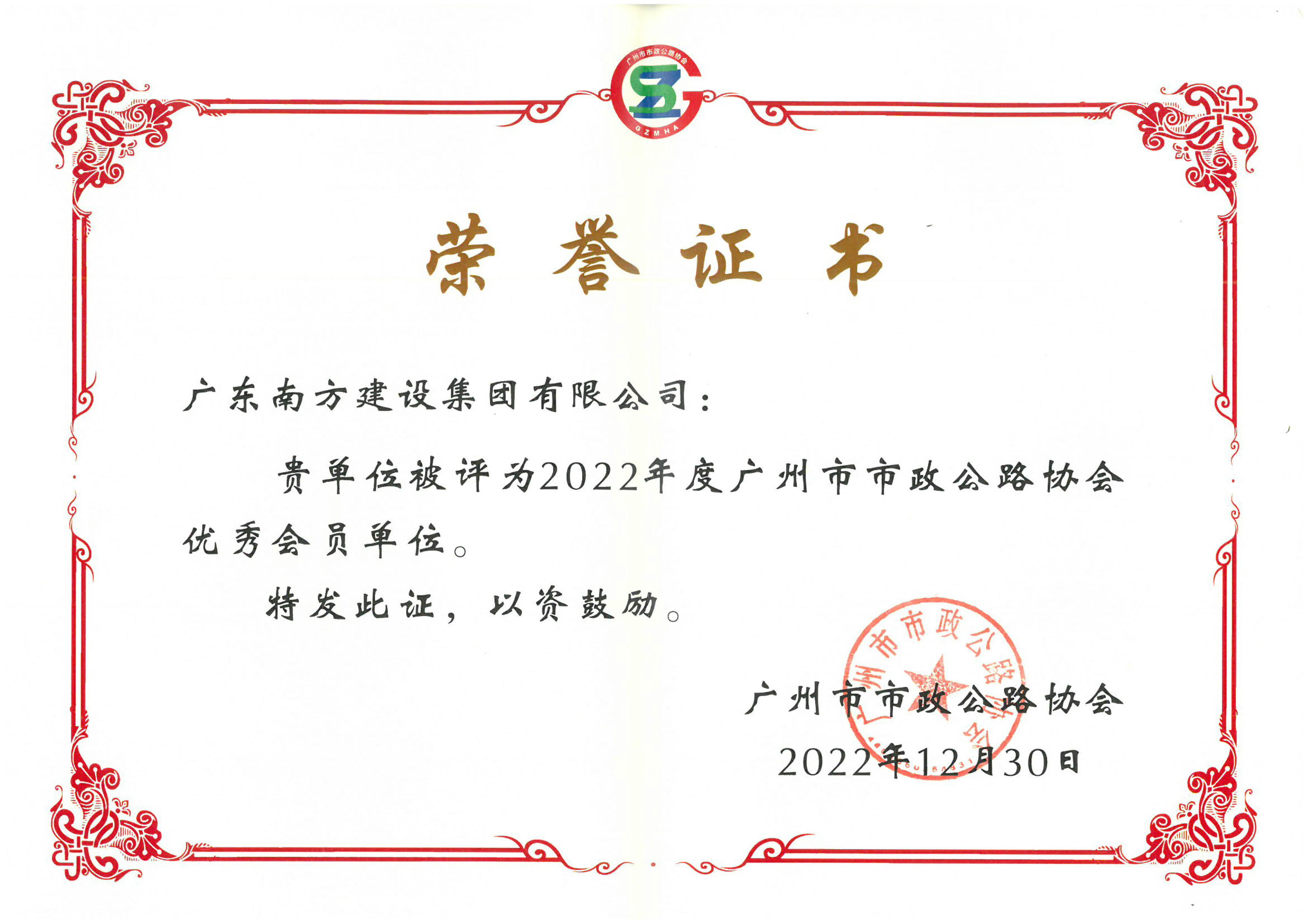 2022年度廣州市市政公路協(xié)會(huì)優(yōu)秀會(huì)員單位