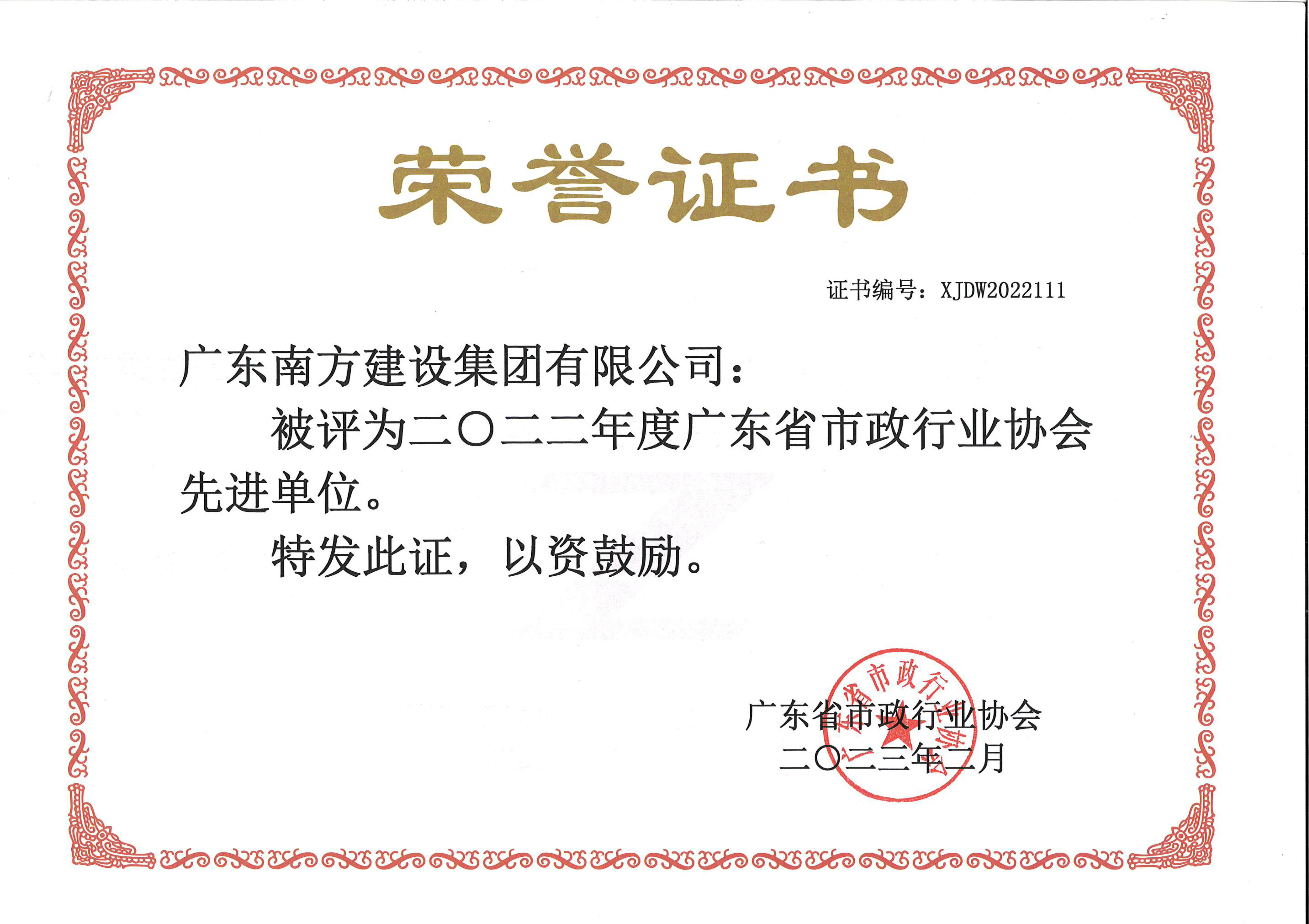 2022年度廣東省市政行業(yè)協(xié)會(huì)先進(jìn)單位