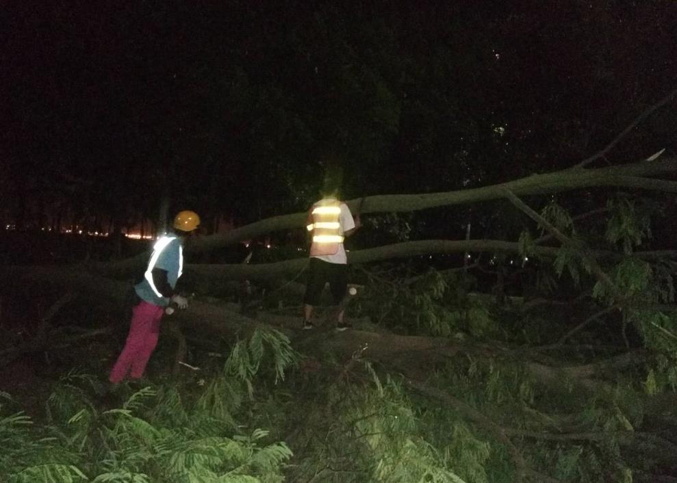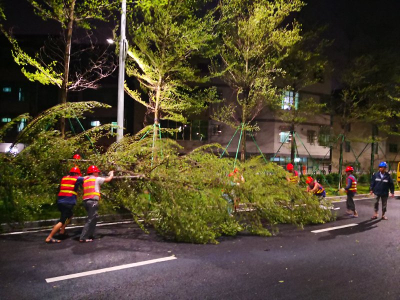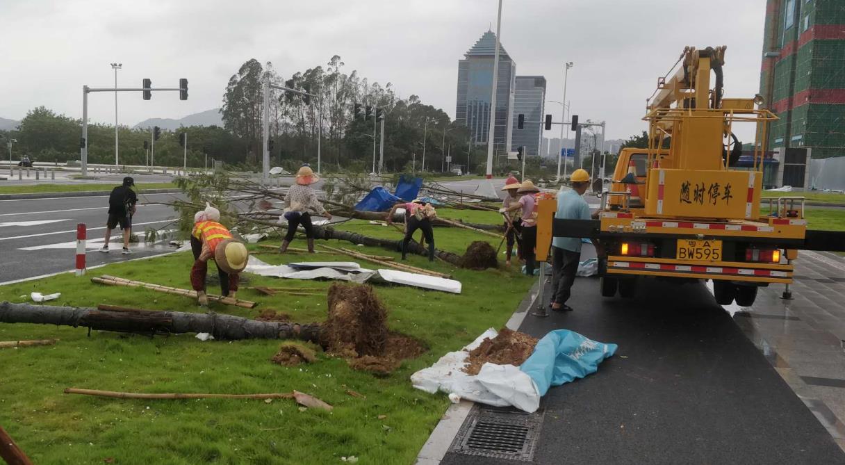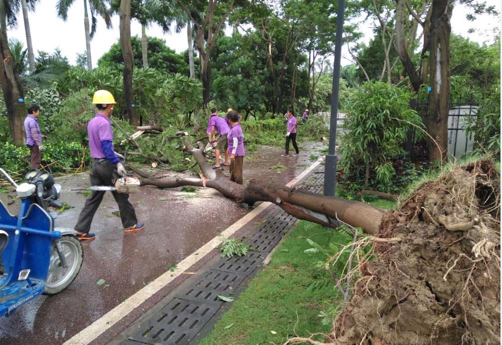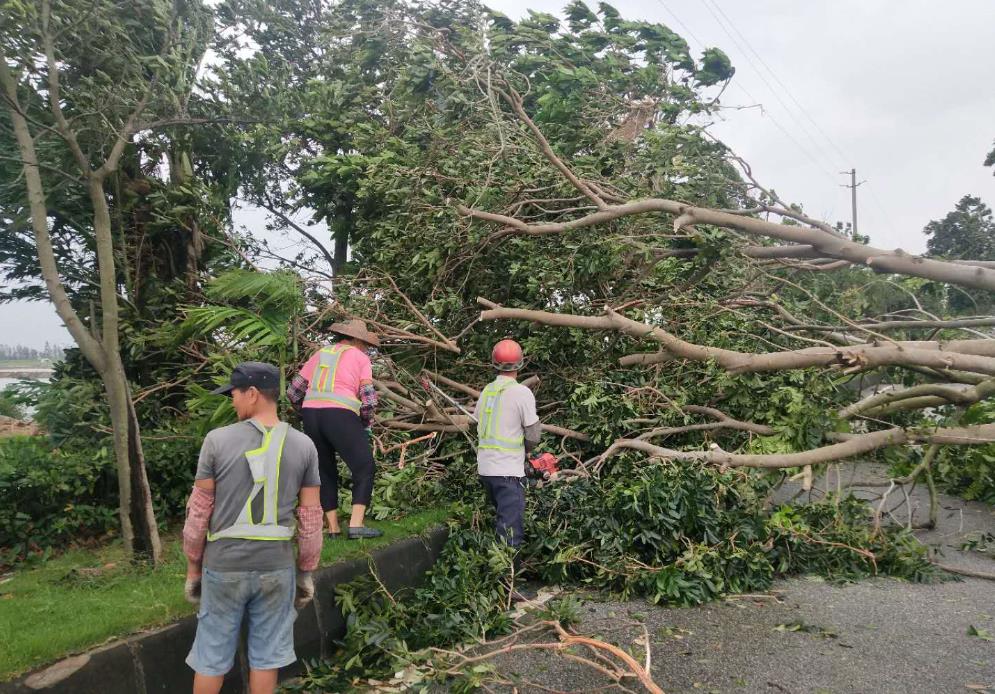 南沙區(qū)風(fēng)力大,受損嚴(yán)重,大量樹木被攔腰折斷、倒伏,導(dǎo)致道路交通阻塞。搶險(xiǎn)人員連續(xù)多日加班,修剪倒樹斷枝,加快排除高速公路兩側(cè)的積水,全力搶修受損基礎(chǔ)設(shè)施,第一時(shí)間恢復(fù)了主要道路的交通。