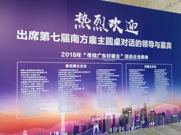 11月30日,由廣東省企業(yè)聯(lián)合會、廣東省企業(yè)家協(xié)會主辦的“第七屆南方雇主圓桌對話”在廣州鳴泉居度假村舉行,會上發(fā)布了2018年廣東省最佳雇主、好雇主榜單,同時發(fā)布2018廣東企業(yè)履行雇主責任報告。